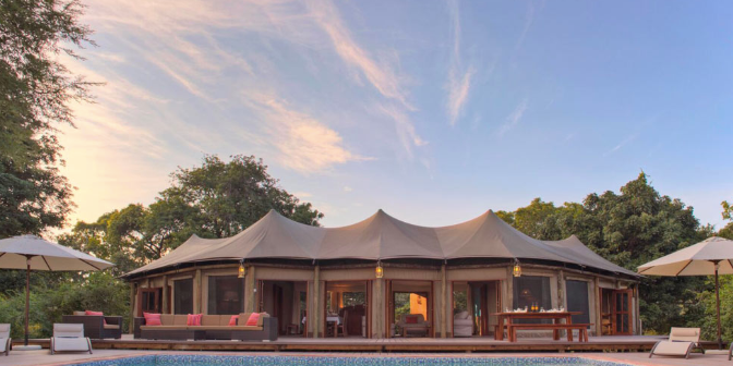 The Crocodile Nest is a large tented house with three en-suite bedrooms, a private swimming pool, and stunning views of the Luangwa River. It offers a luxurious and private safari experience with a dedicated guide and vehicle. Guests can enjoy meals from the a la carte restaurant delivered to the house.