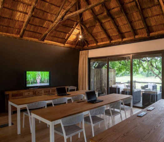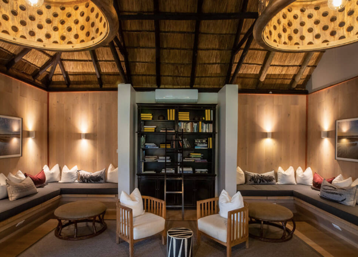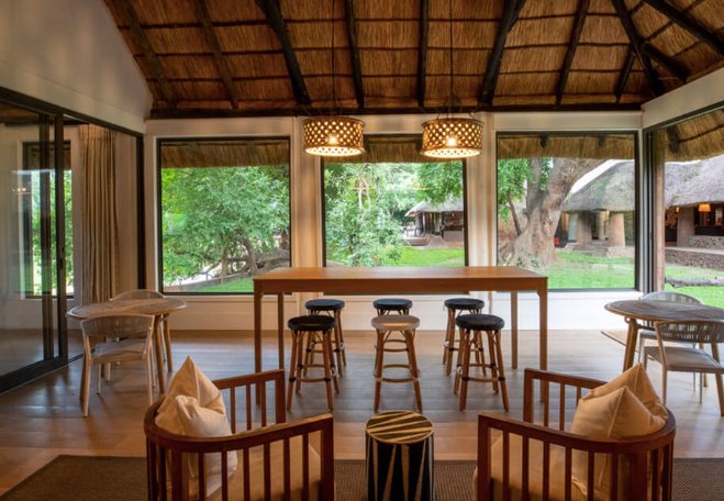 Accommodation options include 18 guest chalets, 2 suites, and 3 family rooms, all featuring comfortable amenities such as air conditioning, mosquito nets, toiletries, hair dryers, and personal safes. The open-plan central lodge facility incorporates reception, lounge, dining, and bar areas, while the swimming pool offers scenic views of the lagoon. Guests can also enjoy meals in the restaurant, relax in the fully-stocked bar, and make use of facilities like the photographic studio, outdoor gym, library, and Bush-Spa.